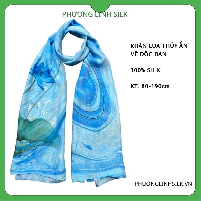 Mỗi chiếc khăn Thủy ấn là một tác phẩm độc nhất vô nhị! Bởi sự di chuyển và tạo hình trên mặt nước là việc không thể lập lại và sao chép. Để có thể vẽ được trên lụa, người nghệ nhân phải biết tính toán độ ấn của bút, dùng mực chặn để kiểm màu không bị loang. Mỗi một chiếc Khăn Lụa Thủy Ấn cần khoảng 30 ngày công thực hiện và đòi hỏi người nghệ nhân phải có tay nghề cao cùng sự tỉ mỉ tuyệt đối.