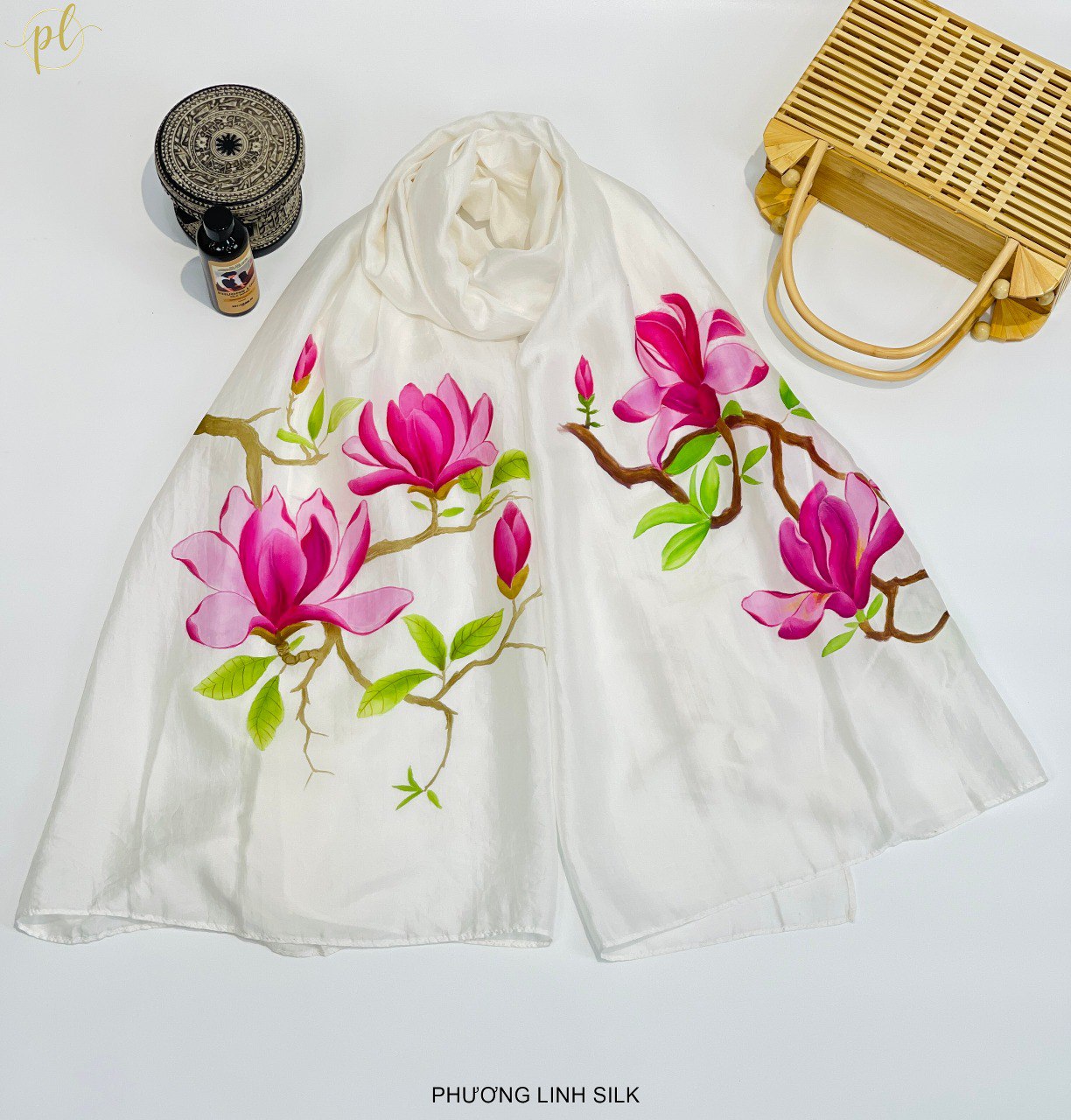 Với những quý cô thích sự trang nhã nhẹ nhàng thì chiếc khăn lụa tơ tằm vẽ tay thủ công này không thế bỏ qua … một chiếc khăn lụa tơ tằm vẽ tay độc bản cùng sự kết hợp màu tinh tế là món phụ kiện nâng tầm giá trị set đồ của bạn .