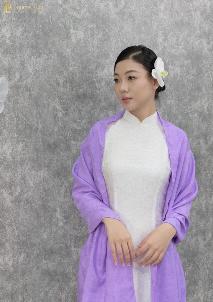 Hoạ tiết vân chìm trên khăn lụa vân tạo ra một hiệu ứng đặc biệt và tinh tế, làm nổi bật vẻ đẹp tự nhiên và phong cách của người mặc. Những hoa văn được dệt tinh tế trên nền lụa mềm mại tạo ra một cảm giác độc đáo và quý phái, phản ánh sự tinh tế và nghệ thuật của người thợ thủ công.