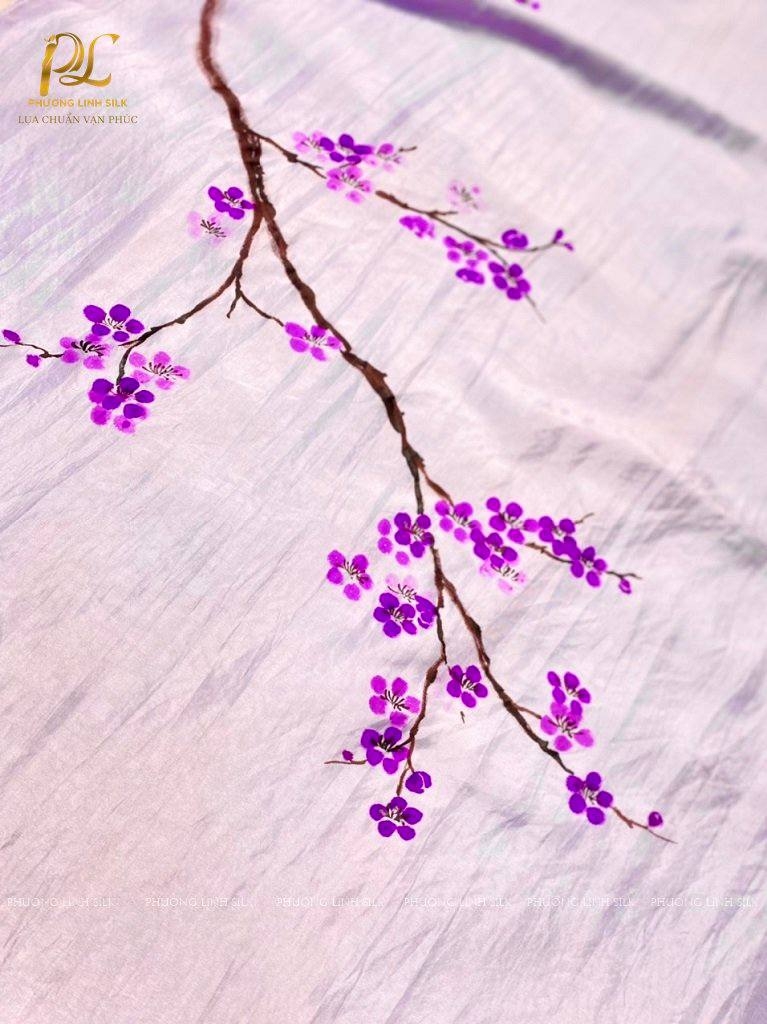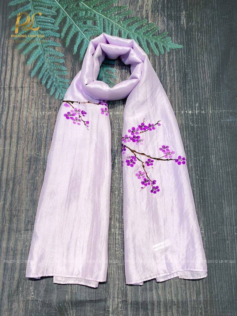 Khăn lụa vạn phúc hà đông TH vẽ màu nước được làm từ tơ tằm 100% và được vẽ tay hoàn toàn bởi hoạ sỹ có tay nghề cao, lâu năm.
