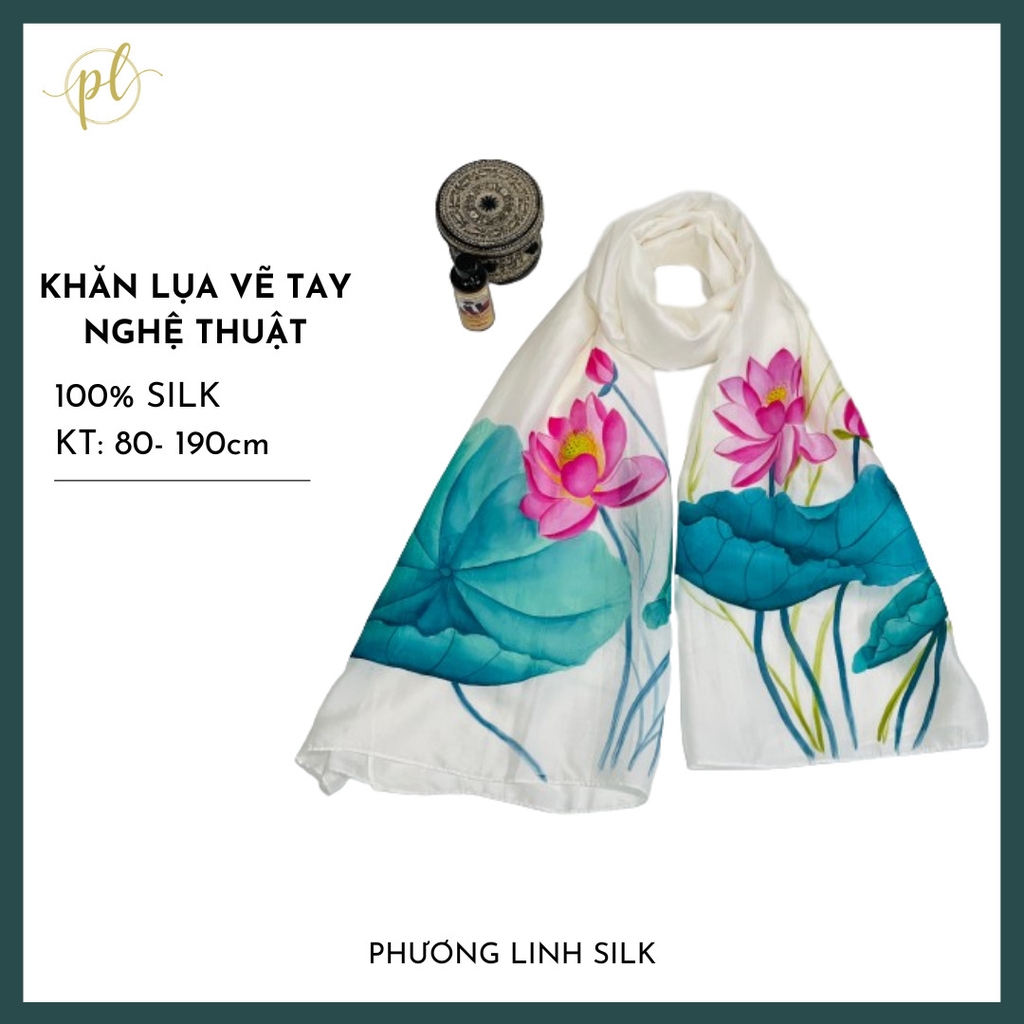 KHĂN LỤA VẼ MÀU NƯỚC NGHỆ THUẬT ĐỘC BẢN 100% TƠ TẰM HOA SEN QUỐC