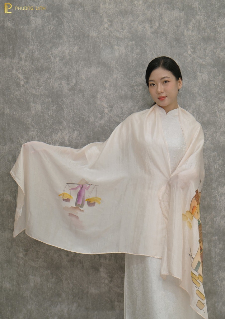 KHĂN LỤA VẼ MÀU NƯỚC NGHỆ THUẬT ĐỘC BẢN 100% TƠ TẰM PHỐ CỔ