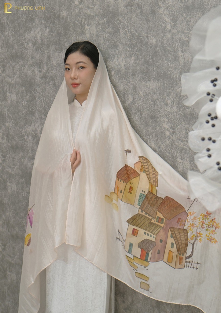 Khăn lụa vẽ màu nước được làm từ tơ tằm 100% và được vẽ tay hoàn toàn bởi hoạ sỹ có tay nghề cao, lâu năm. Khi chạm bề mặt khăn có cảm giác mướt và mịn, hình vẽ sinh động. Mỗi một chiếc khăn cần từ 25 - 30 ngày để hoàn thành .