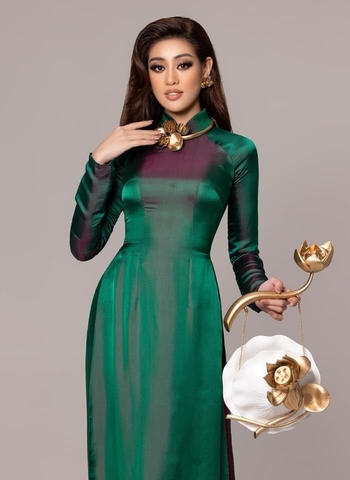Hoa hậu Khánh Vân lựa chọn áo dài lụa tơ tằm tại Miss Universe
