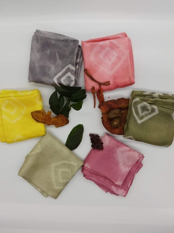 Lụa tơ tằm không chỉ được biết đến dệt từ tơ tằm tự nhiên mà còn được nhuộm từ các nguyên liệu tự nhiên như lá bàng, lá tre, lá thiên lý, lá xà cừ, lá găng, ngải cứu, lá bạch đàn, lá chè, vỏ cây xà cừ, lá trầu không, cánh kiến…. và một số loại cỏ, củ, trái cây làm dung dịch màu.