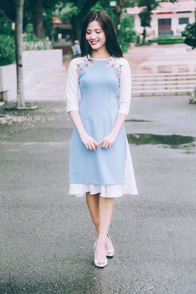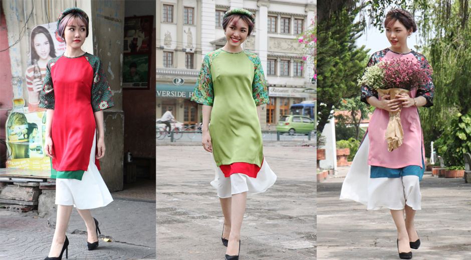 Chiếc áo dài ở set trang phục này trông khá khác so với những kiểu áo dài truyền thống. Phần tà áo cắt ngắn lên ngang với đầu gối, tay áo lửng và kết hợp cùng quần culottes thay vì quần dài bình thường của áo dài truyền thống. Đây là trang phục áo dài cách tân được ưa chuộng nhất hiện nay.