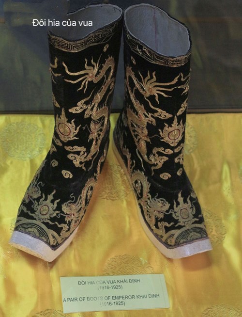 Nhưng trang phục thiết đại chiều của vua, muốn gọi là cửu long, áo là hoàng bào, trang trí hình rồng mắt hổ phù, hai đen thêu rồng nạm vàng.