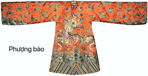 Áo vua trang trí hình rồng, Áo hoàng tử trang trí hình Lân , Áo hoàng hậu công chúa hình Phượng. Ngũ đại chiều của vua có chín rồng hướng Thiên bằng vàng, mũ hoàng hậu có chín con Phượng , Chín con rồng, mũ hoàng thái hậu theo chín con Phượng, mũ của cung ra tùy theo thứ bậc mà có từ 1-7 con chim phượng … rồng cũng vậy rồng trên áo mua có năm móng, sông trên áo Thái Tử cũng có năm mỏng nhưng chỉ là dùng mặt nạ.